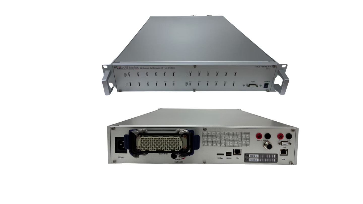 电池模拟架/模块是一种电池模拟器模块,带有 24 个隔离电池,用于模拟电池功能。每个电池单元的电压可通过标准 CAN、以太网 TCP 和 USB-C 进行调节,并可获得电压和电流测量值。
